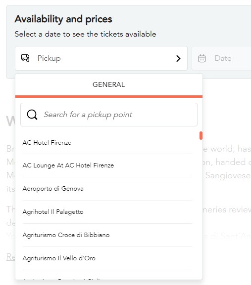 }When an activity has pickup points, customers must choose a pickup point before proceeding as available dates and options may vary for each point.