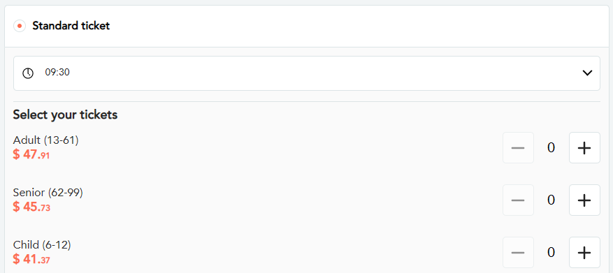 The available ticket holders may vary, depending on the activity configuration, pickup parameter (if applicable), the selected date and timeslot.